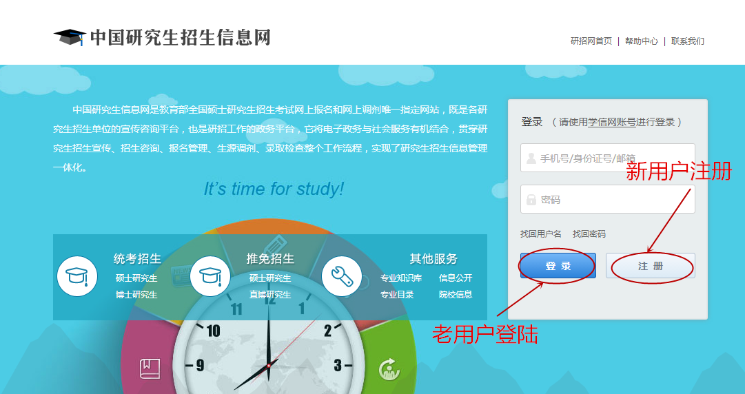 考生进入研招网之后,点击“统考网报”,会进入登陆页面:http://yz.chsi.com.cn/yzwb