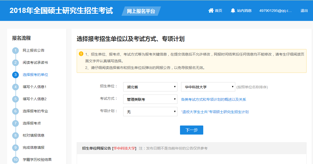 3、其他未尽事宜请查看研招网报名平台:http://yz.chsi.com.cn/yzwb/
